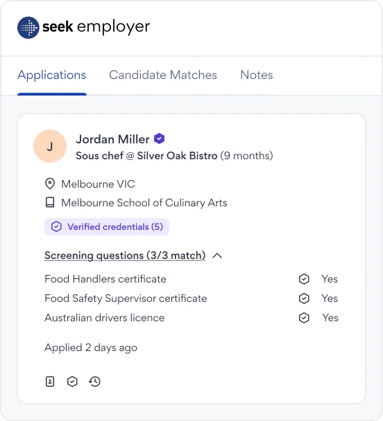 When applying for a jobVerified ticks appear beside your credentials and application answers, helping you stand out instantly.
